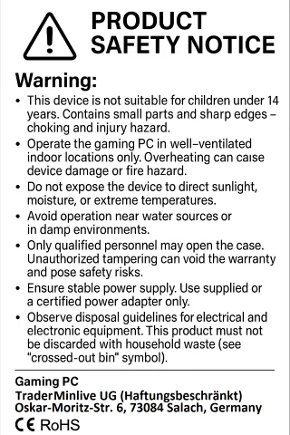 • PC nur auf stabiler, fester und ebener Unterlage betreiben.